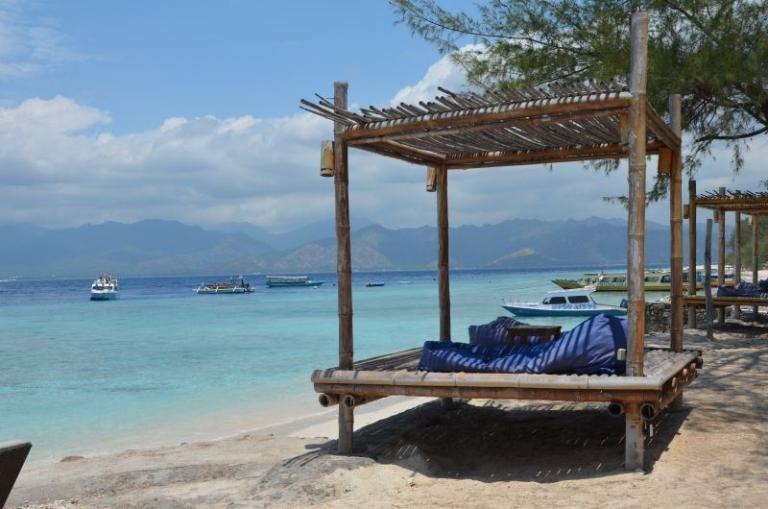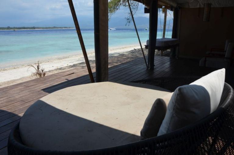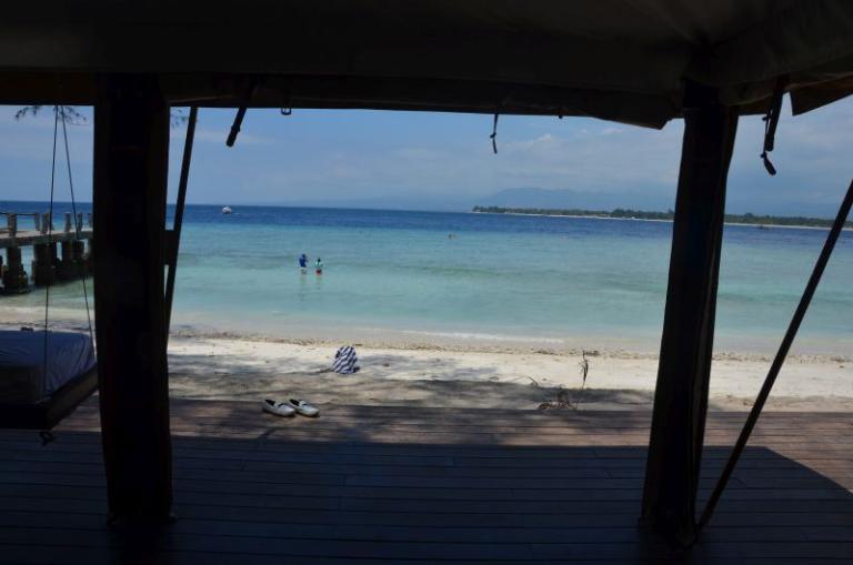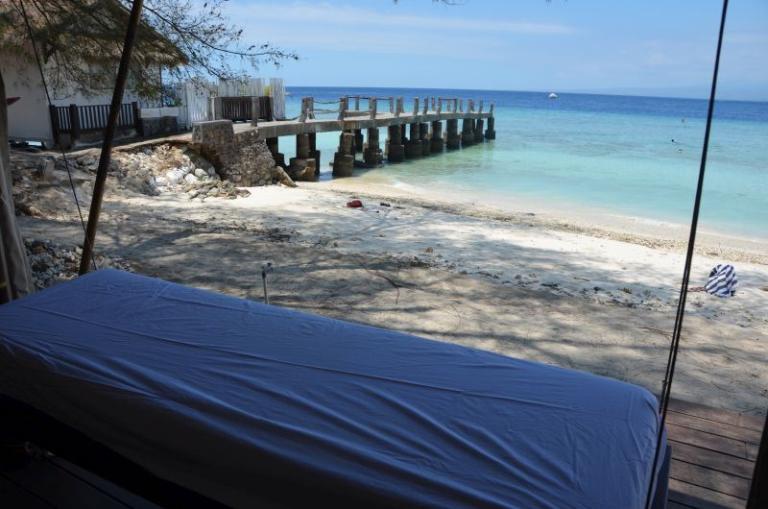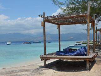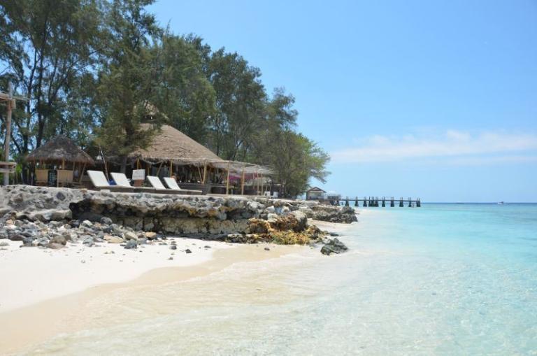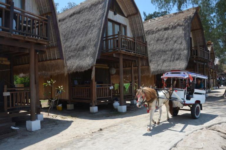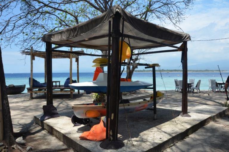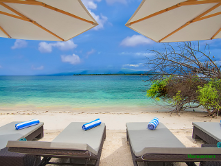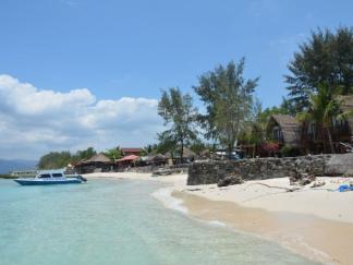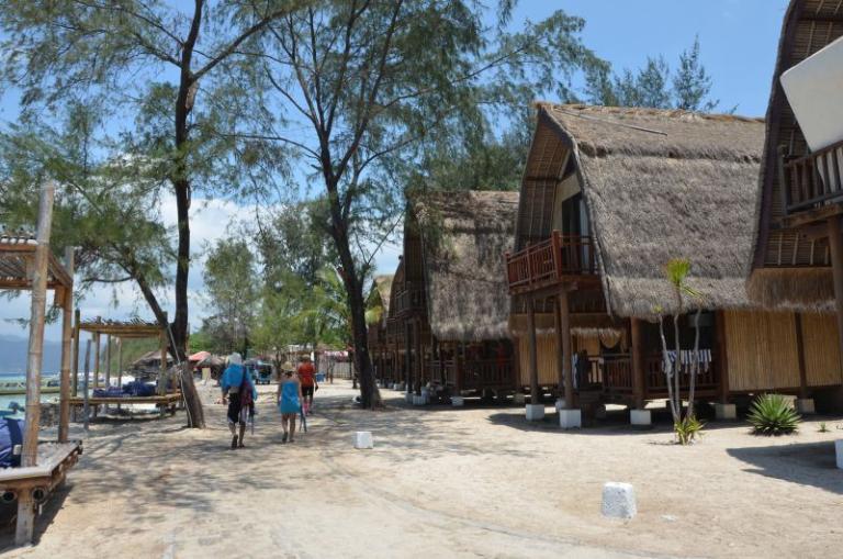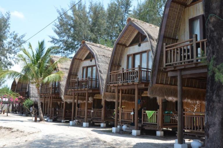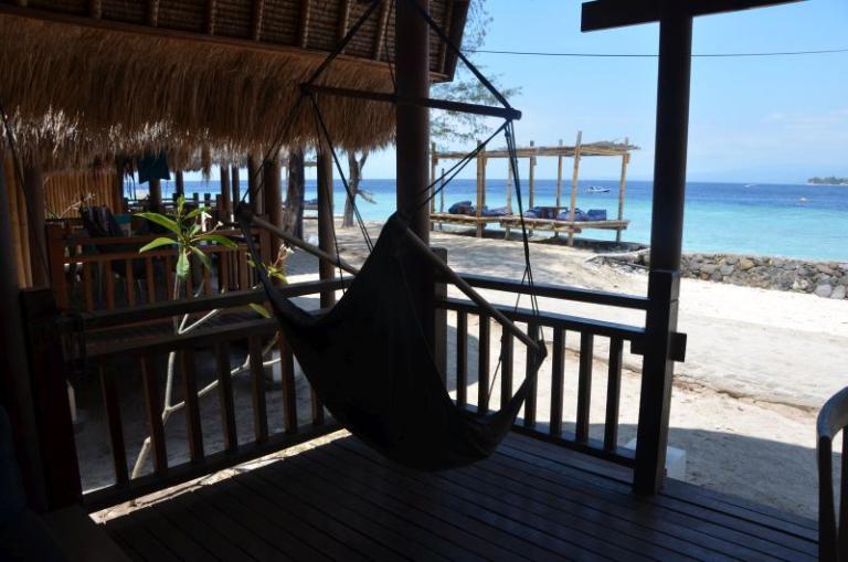 In direkter Strandlage, auf der Insel Gili Meno, neben dem Inselhafen. Einige Restaurants und Bars sind in unmittelbarer Umgebung. Der Zielflughafen Praya (Lombok) ist ca. 50 km entfernt. Der Transfer vom Flughafen Lombok zum Hafen dauert ca. 2 Std. per Pkw. Dann geht es weiter mit dem Boot nach Gili Meno (ca. 20 Minuten).