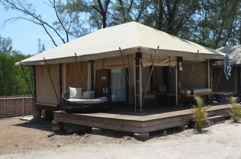 > 1 Bedroom Sea Tent: 23 qm, originelle, zeltartige Unterkünfte mit Dusche/WC, Föhn, Flachbild-TV, DVD-Player, WLAN, Klimaanlage, Kühlschrank, Kaffee-/Teezubereiter, Safe und Terrasse mit Meerblick.