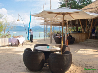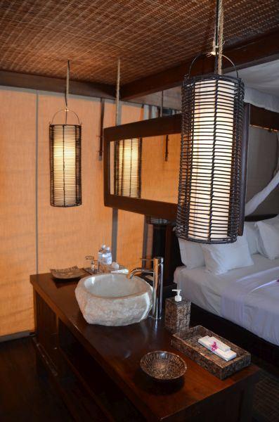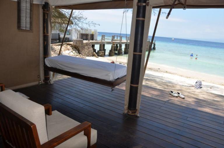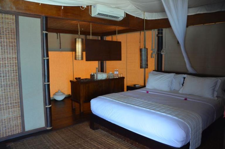 Ein absolut außergewöhnliches Hotelresort mit Bungalows im traditionellen Stil der Einwohner dieser Region sowie Luxus-Zelten. Die traumhafte Lage des Resorts und der perfekte Service der Hotel-Mannschaft machen den Aufenthalt in diesem Kleinod zu etwas sehr Besonderen. Taucher & Schnorchler werden sich hier wie im Paradies fühlen. Das Restaurant direkt am Meer mit wunderschönen Blick auf das vorgelagerte Riff gehört zu den besten Lokalen auf der Insel.