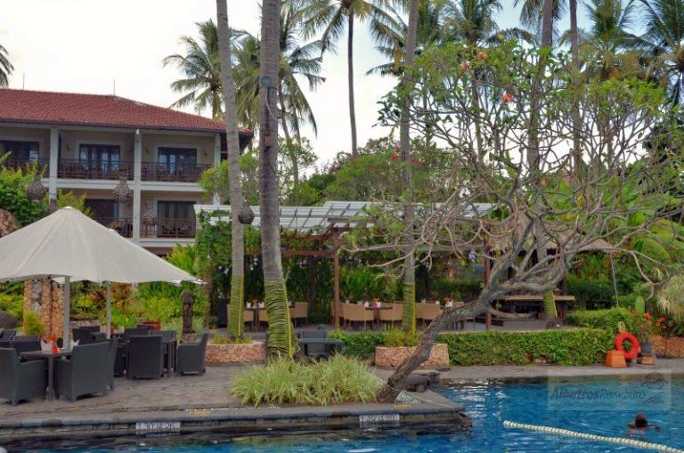 Direkt am privaten Sandstrand gelegen. Das Haupttouristenviertel "Senggigi" ist nur wenige Schritte vom Hotel entfernt. Lomboks reizvollster hinduistischer Tempel ist der "Batu Bolong Tempel" und mit ca. 2 km Entfernung einen Ausflug wert.