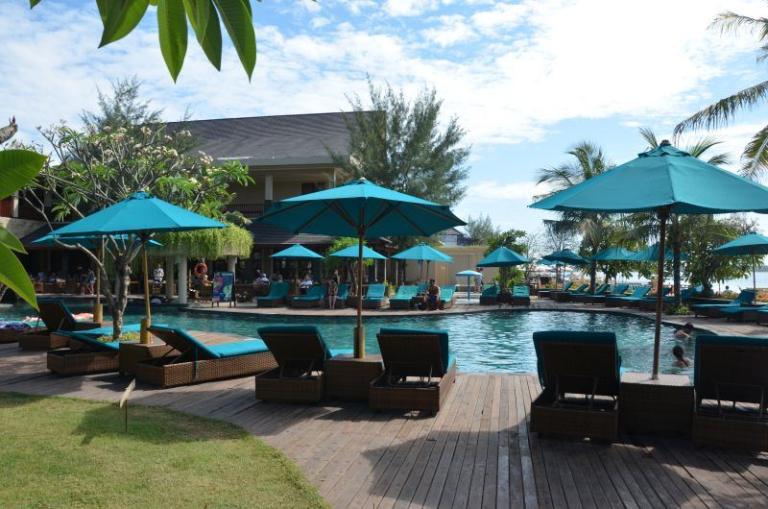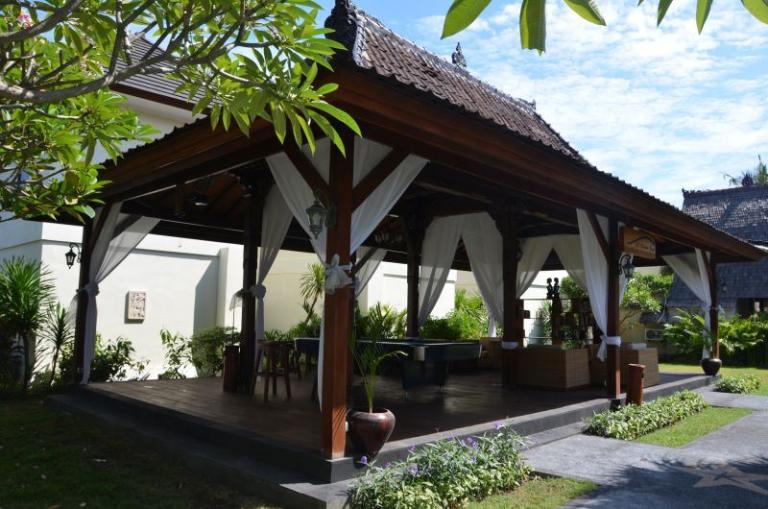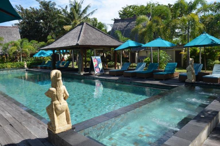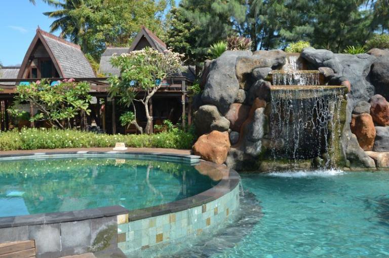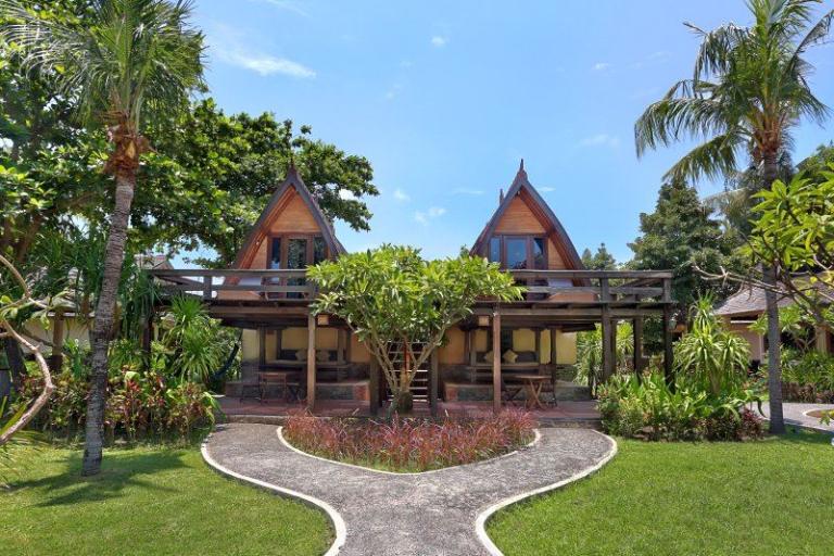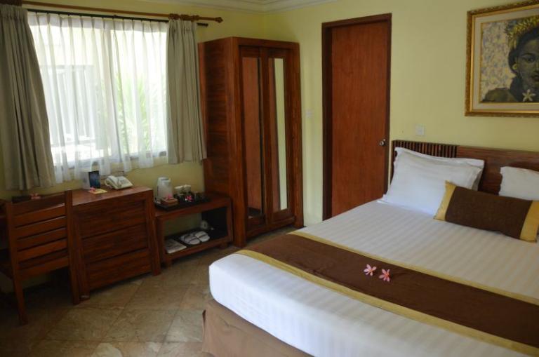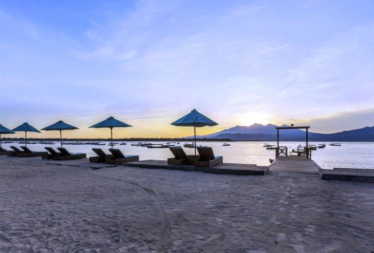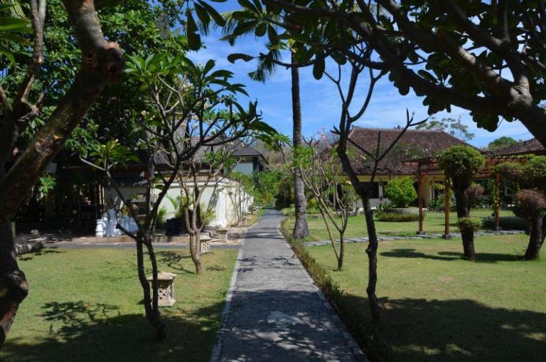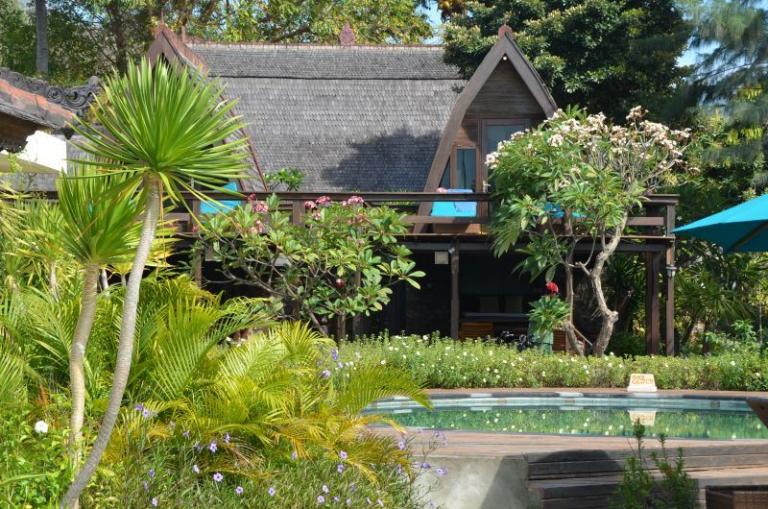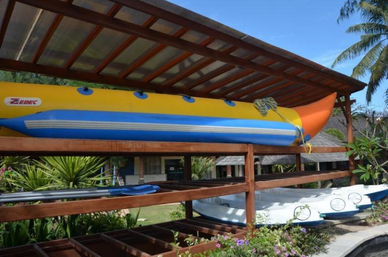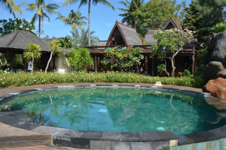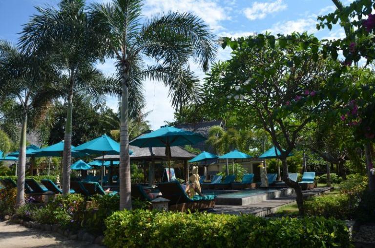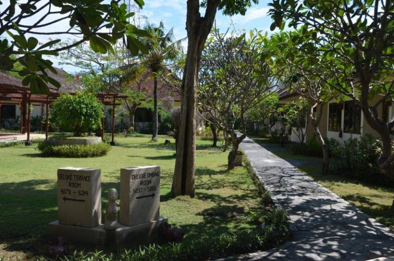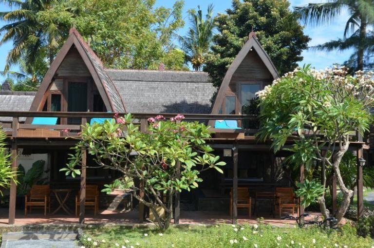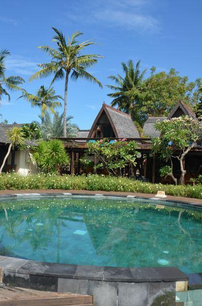 Die Zimmerkategorien reichen vom urigen Reisspeicher zum Luxus Cottage. Das Hotel ist nur durch eine kleine schmale Uferstraße, welche nur von Pferdekutschen und Fahrrädern befahren wird, vom sehr schönen Strand getrennt. Das vorgelagerte Korallenriff ist ein wahres Unterwasserparadies. Da das Riff bis unmittelbar an den Strand heranreicht, sind beim Schwimmen Badeschuhe empfehlenswert. In der Hotelanlage gibt es verschiedene Zimmerkategorien: vom urigen Reisspeicher bis zum Luxuscoaches