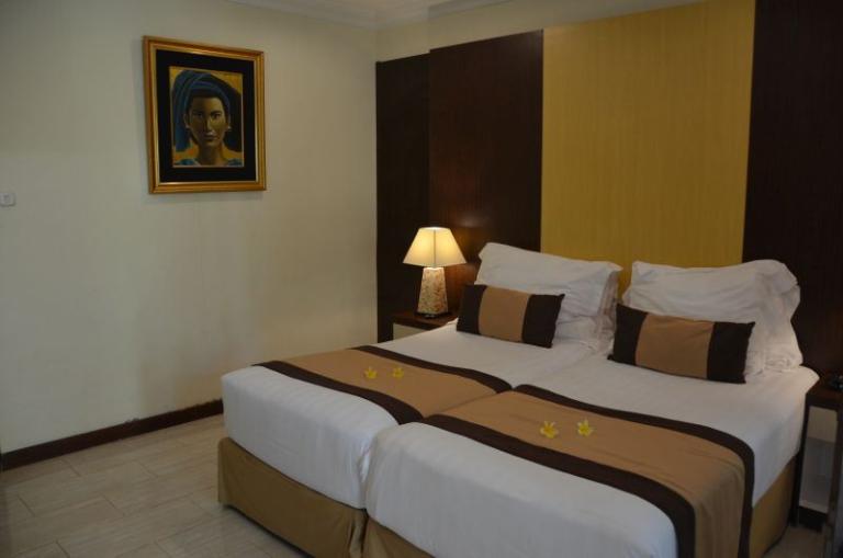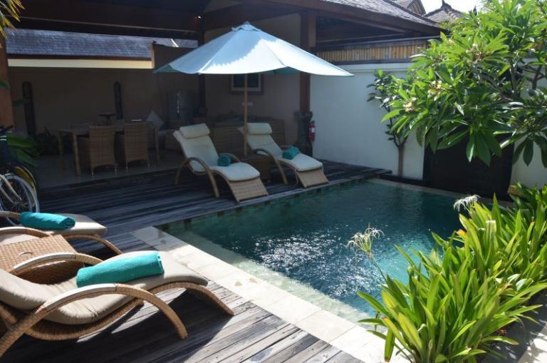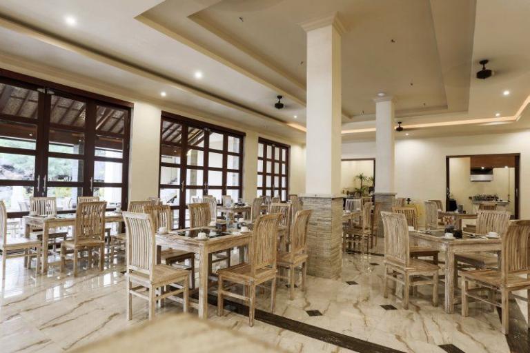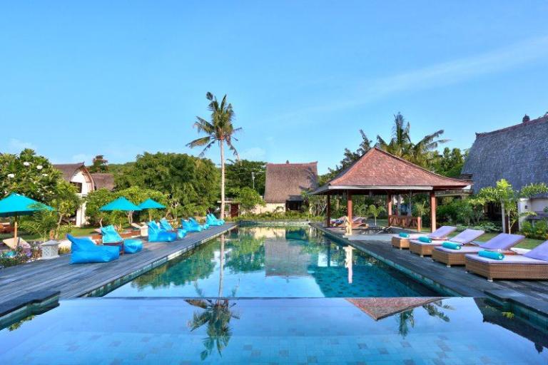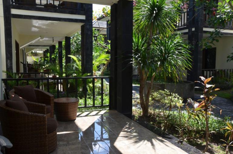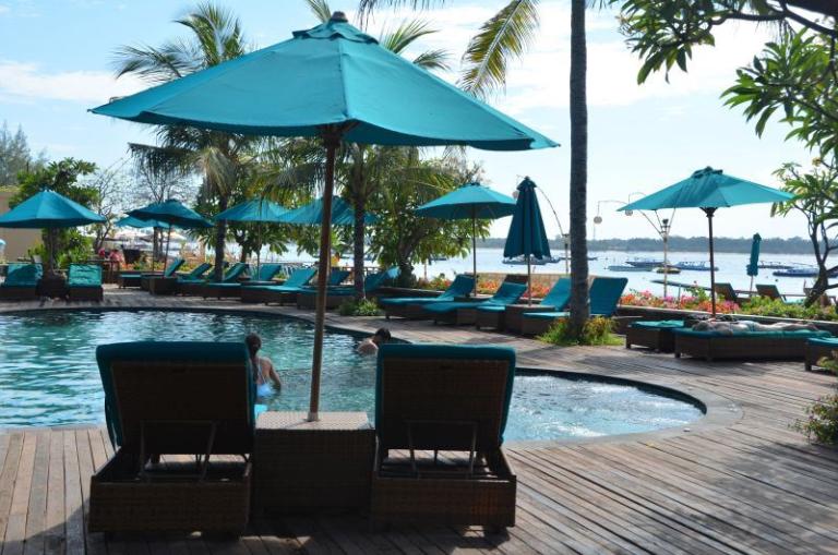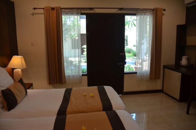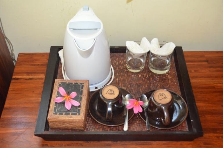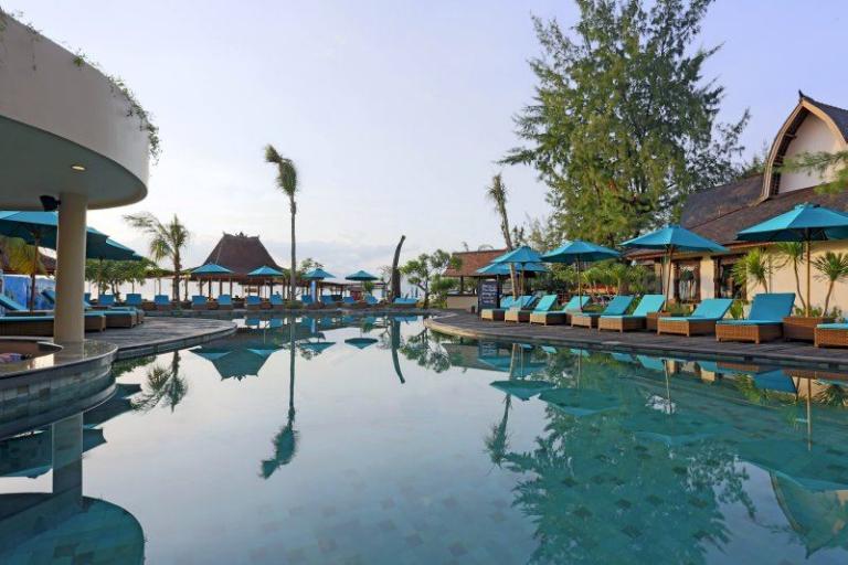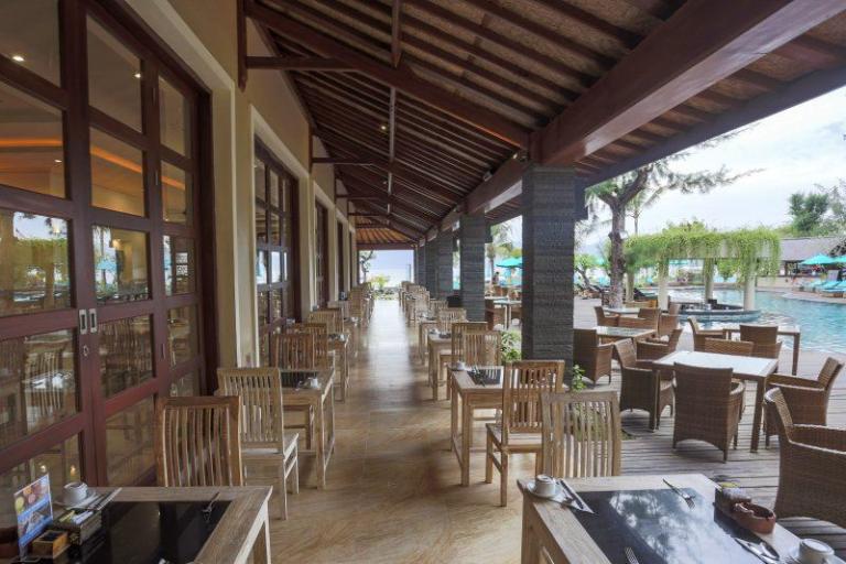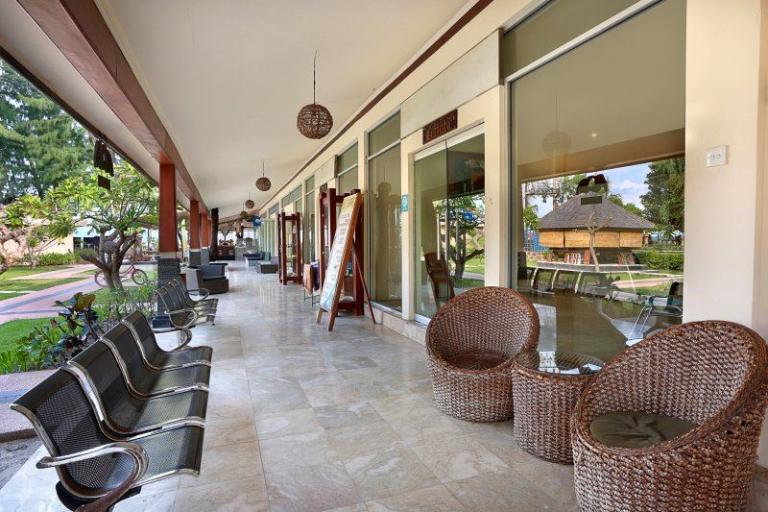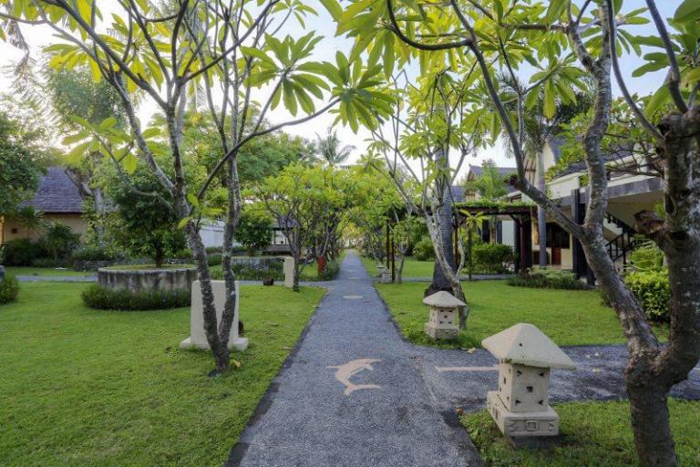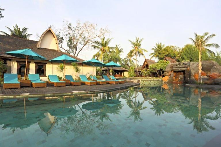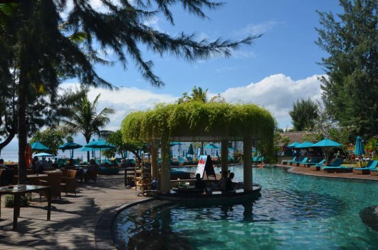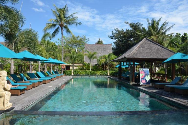 Die Zimmerkategorien reichen vom urigen Reisspeicher zum Luxus Cottage. Das Hotel ist nur durch eine kleine schmale Uferstraße, welche nur von Pferdekutschen und Fahrrädern befahren wird, vom sehr schönen Strand getrennt. Das vorgelagerte Korallenriff ist ein wahres Unterwasserparadies. Da das Riff bis unmittelbar an den Strand heranreicht, sind beim Schwimmen Badeschuhe empfehlenswert. In der Hotelanlage gibt es verschiedene Zimmerkategorien: vom urigen Reisspeicher bis zum Luxuscoaches