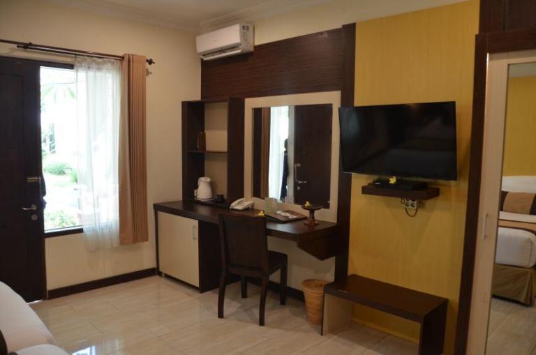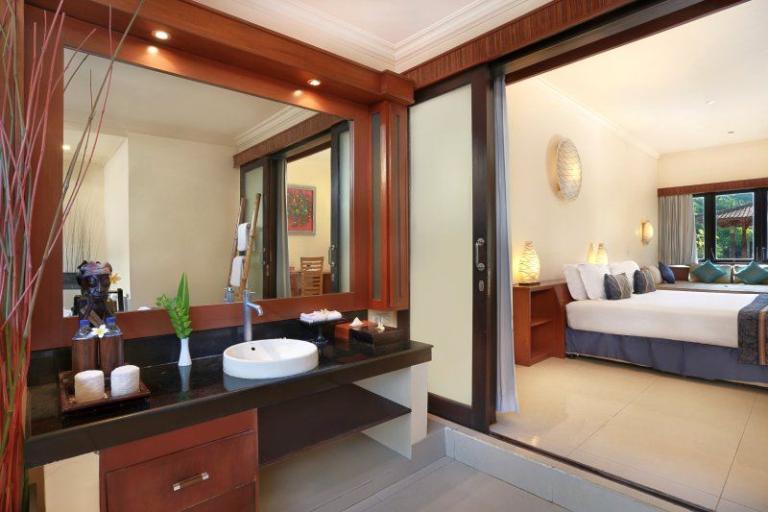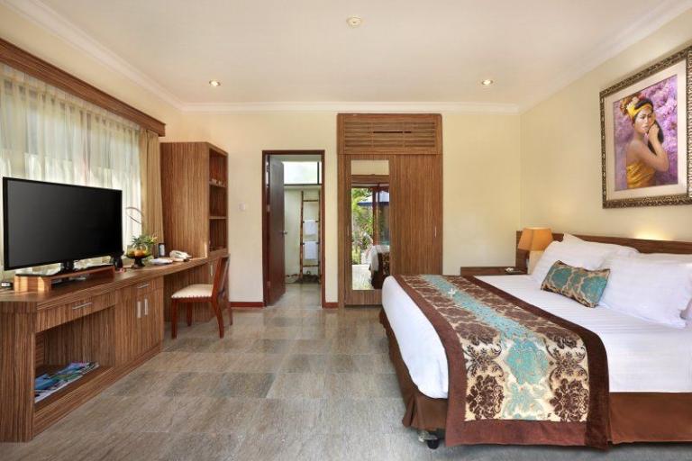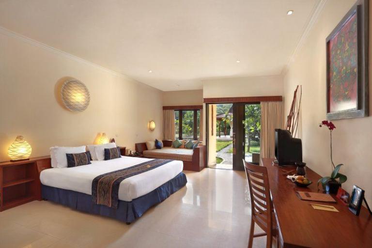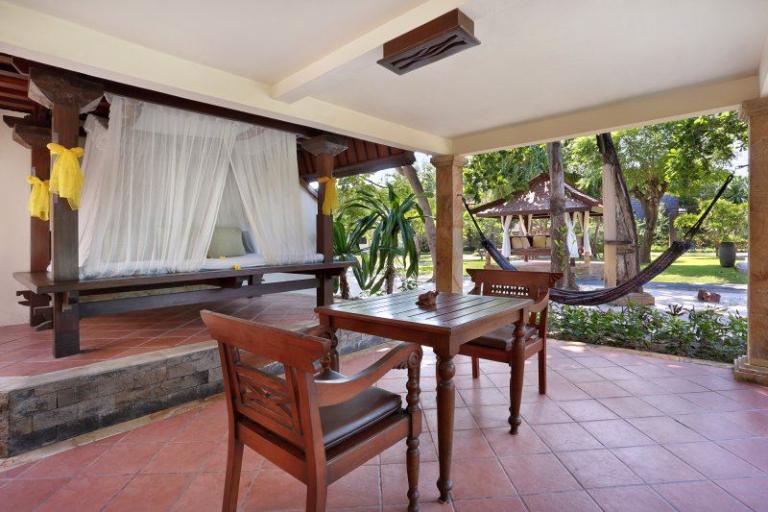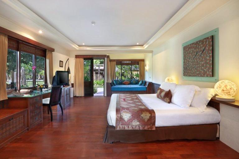 > Superior-Lumbung-Terrace: Zimmergröße (ca.): 33 qm, Lage: im Bungalowgebäude, Bad oder Dusche/WC, Flachbildschirm, Kaffee-/Teezubereiter, Telefon, Terrasse, Safe (inklusive), Minibar (gegen Gebühr), Klimaanlage, auch zur Alleinnutzung