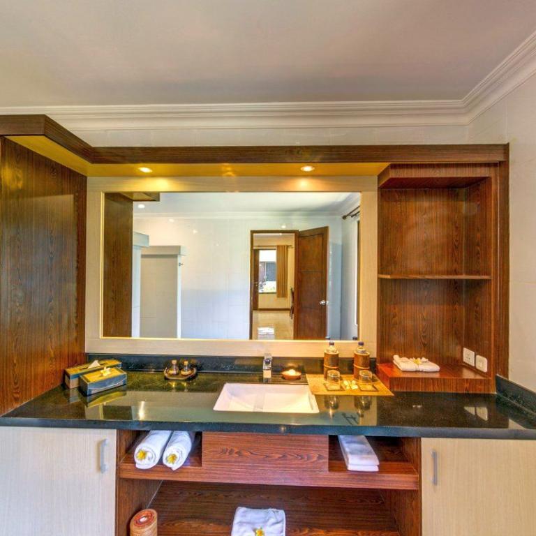 > Deluxe-Ombak: Zimmergröße (ca.): 58 qm, im Erdgeschoss, Bad oder Dusche/WC, Außenbad, Flachbildschirm, Sat.-TV, Telefon, Safe (inklusive), Minibar (gegen Gebühr), Klimaanlage