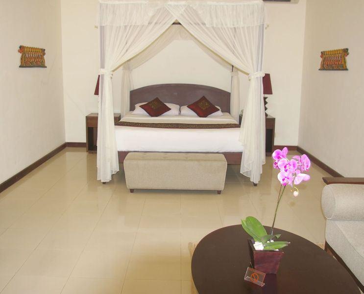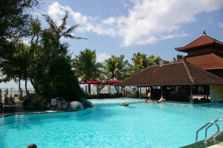 Schöne, im balinesischen Stil gebaute Anlage mit 128 Gästezimmern und tropischem Garten. Lobby, 2 Restaurants und Bar. Der Swimmingpool liegt nahe beim Strand. Zwei weitere Swimmingpools befinden sich in der Anlage. Liegen, Sonnenschirme und Badetücher an Pool und Strand inklusive.
