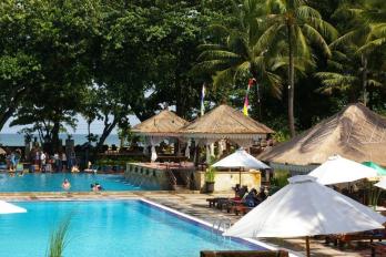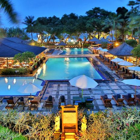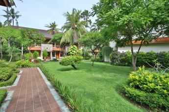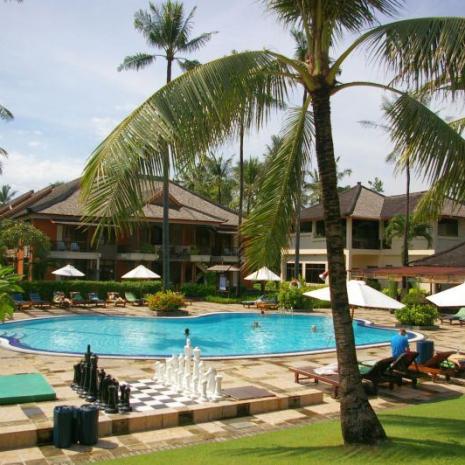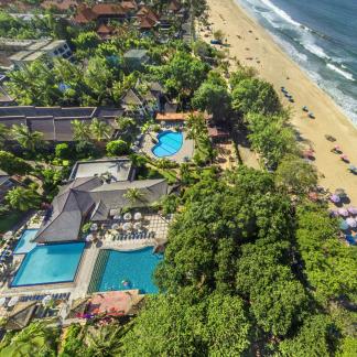 Das Hotel befindet sich auf einem weitläufigen Gartengrundstück, nur durch die kaum befahrene Uferpromenade vom Legian Strand getrennt (starker Wellengang). Zahlreiche Shoppingmöglichkeiten, Bars und Restaurants sind bequem zu Fuß erreichbar. Der Transfer vom Airport dauert ca. 20 Minuten.