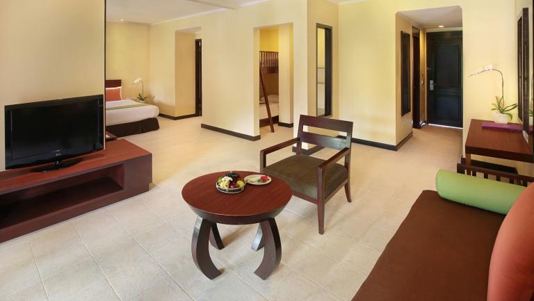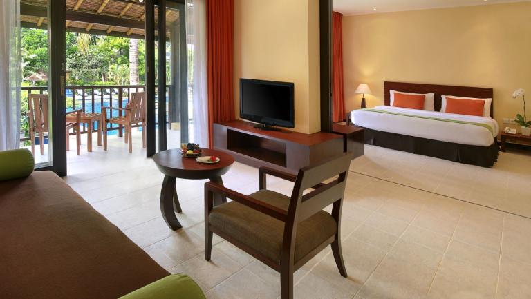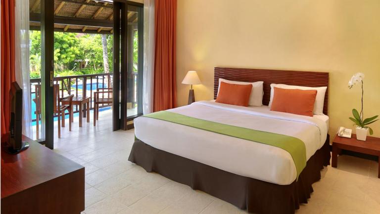 Das Hotel verfügt über 42 kleine Superior Zimmer (zumeist in den zweistöckigen "Lombok-Bungalows" mit Runddach) und 76 geräumige Deluxe Zimmer (zumeist in einstöckigen Bungalows).