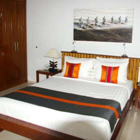Die modernen, in klaren Linien eingerichteten Zimmer sind mit balinesischen Stilelementen dekoriert. Zur komfortablen Ausstattung auf mindestens 45 m² gehören: halboffenes Badezimmer mit Dusche/WC, Klimaanlage, Ventilator, Safe, Telefon und Veranda.