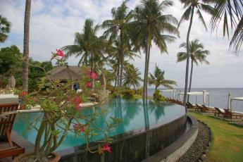 Ruhig-erholsame Lage direkt am Meer im kleinen Örtchen Kubu an der malerischen Nordostküste von Bali. Das schmale Ufer besteht aus den für diese Region typischen schwarzen Kieselsteinen. Taucher schätzen das Hausriff, das vom Ufer aus betauchbar ist. Weitere hervorragende Tauchgebiete in der Umgebung und bei Tulamben sind per Boot erreichbar, zu weiter entfernt gelegenen Spots wie Menjangan oder Nusa Penida werden Fahrten angeboten. Der Transfer vom Airport oder den Hotels im Süden dauert ca. 3 Stunden, die Strecke führt zum Teil durch malerische Landschaften. Fahrten während der Dunkelheit sind möglich, dauern aber länger. Bei Abflügen vor 13.00 Uhr fällt ein Zuschlag in Höhe von Euro 24 pro Wagen an. Hinweis: keine Reiseleitung vor Ort (aber telefonische Erreichbarkeit).
