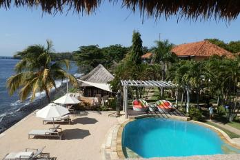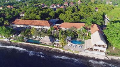 An der Nordostküste, in der Nähe eines der schönsten Tauchreviere Balis gelegen. Tulamben wurde berühmt durch ein im Zweiten Weltkrieg vor der Küste gesunkenes amerikanisches Containerschiff, das auf einer Tiefe von 4-29 Metern liegt und vom Strand aus betaucht werden kann. Außerdem bietet das Resort weitere wunderschöne Tauchplätze in „Gehweite": eine Steilwand und ein Korallenriff. Fahrtzeit zum Flughafen: ca. 150 Minuten.