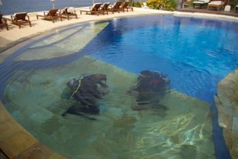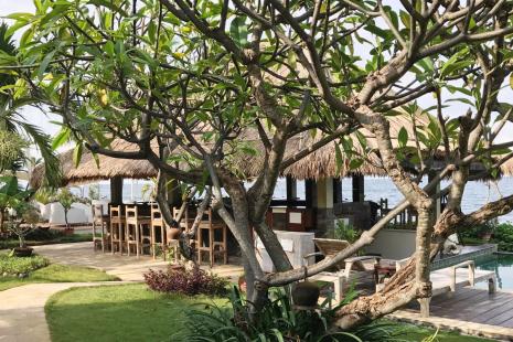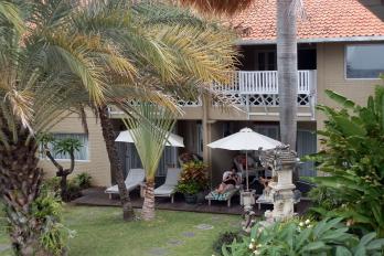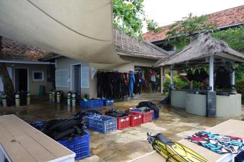 Inmitten eines tropischen Gartens liegen zwei 2-stöckige Gebäude mit 26 Zimmern. Zur Anlage gehören weiterhin 2 Swimmingpools (Liegen, Sonnenschirme und Badetücher ohne Aufpreis), 1 Bar und 1 kleine private Sandterrasse. Im offenen Restaurant, mit Blick auf das Meer, werden europäische und indonesische Gerichte sowie frische Meeresfrüchte serviert. Tauchschule (PADI und SSI Platinum facility) unter deutscher Leitung mit Multimedia-Einrichtungen zur Aus- und Weiterbildung. Sie haben in der gesamten Anlage WiFi-Internetzugang (ohne Aufpreis).