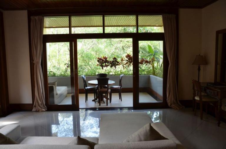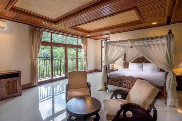 Die einzelnen Villen im Bali chinesischen Stil befinden sich in einer sehr großen tropischen Gartenanlage auf verschiedenen Höhen. Der idyllische Charakter wird durch die zwei durch die Anlagen fließenden Flüsse enorm verstärkt. Abgerundet wird das Angebot durch ein Restaurant, eine Poolbar und eine Lobby-Bar. Vom großen Hauptpool mit separatem Kinderbecken (Liegen und Sonnenschirmen ohne Gebühr) gibt es einen tollen Blick in den Dschungel.