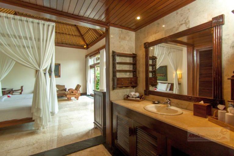 Dieses Villen Resort befindet sich am idyllischen Rand des Dorfs Kedewatan Ubud, der künstlerischen und kulturellen Hauptstadt von Bali. Es liegt weit oberhalb des Flusstals mittem in der atemberaubenden Landschaft des Bergs Sayan, und gleichzeitig sind es nur ca. 10 Autominuten bis zum Zentrum von Ubud. Der Internationale Flughafen Bali ist eine ca. 90-minütige Fahrt von der Unterkunft entfernt.