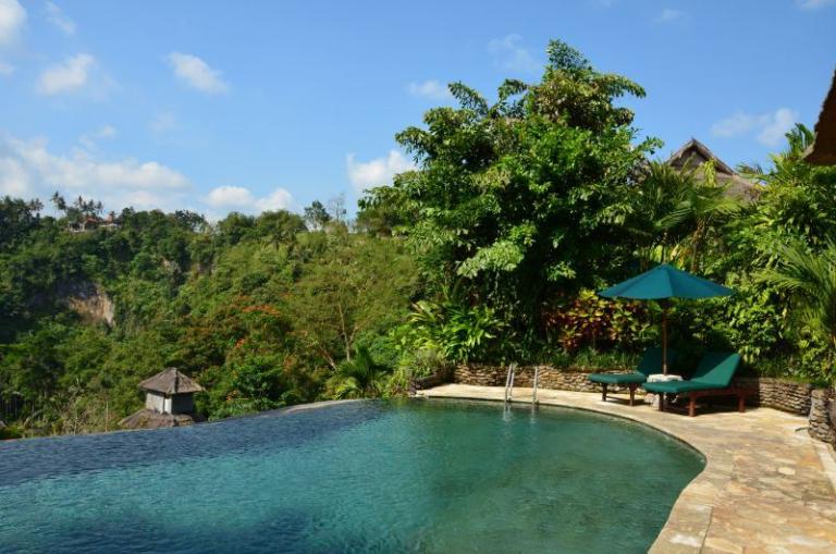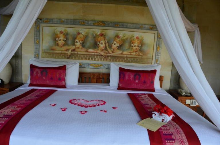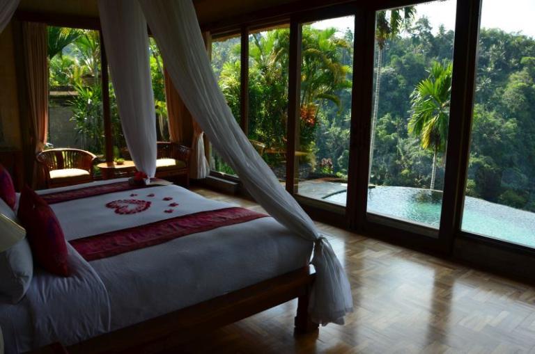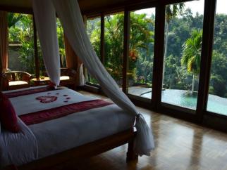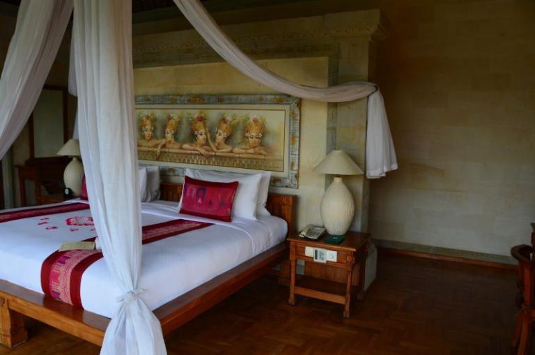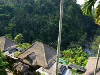 Zimmer: 62 luxuriöse Villen (ab ca. 300 qm) mit Bad, DU/WC, Föhn, Klimaanlage, Kaffee-/Tee-Set, Minibar, Safe, Telefon, Sat.-TV, DVD- u. CD-Player, Kühlschrank. 34 Deluxe Pool u. 13 Royal Pool Villen mit sep. Wohnbereich, privatem Garten, beheizbarem Pool (ca. 300 qm) u. Terrasse mit einzigartigem Blick auf den Ayung Fluss.