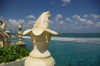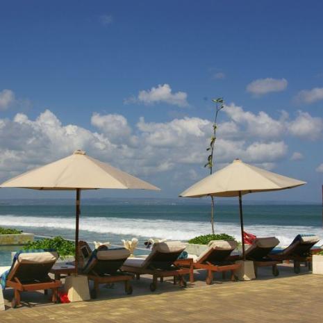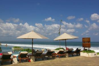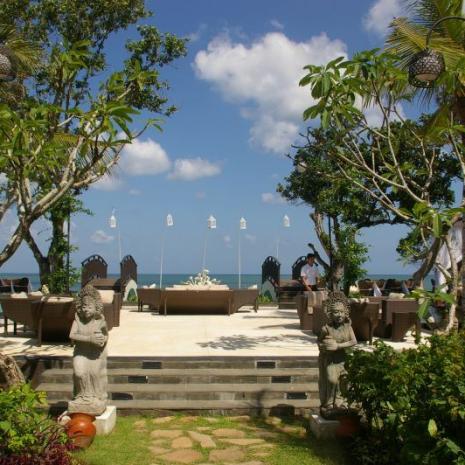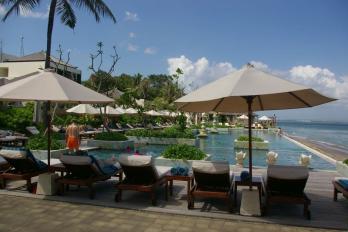 Diese tolle 5 Sterne Hotelanlage haben wir im Rahmen unserer VOR-ORT-CHECK Tour im Mai 2012 besucht (Bilder siehe unten). Sie befindet sich in allererster Strandreihe am weitläufigen Seminyak Beach (teilweise starker Wellengang). Angesagte Restaurants wie das La Luciolla oder Kudeta, hippe Bars sowie trendige und niveauvolle Boutiquen liegen in bequemer Gehweite. Wer mehr erleben wir, kann den kostenlosen Shuttlebus ins trubelige Kuta/Legian nutzen (Dauer des Transfers ca. 15 Minuten). Der Transfer vom Flughafen dauert ca. 40 Minuten.