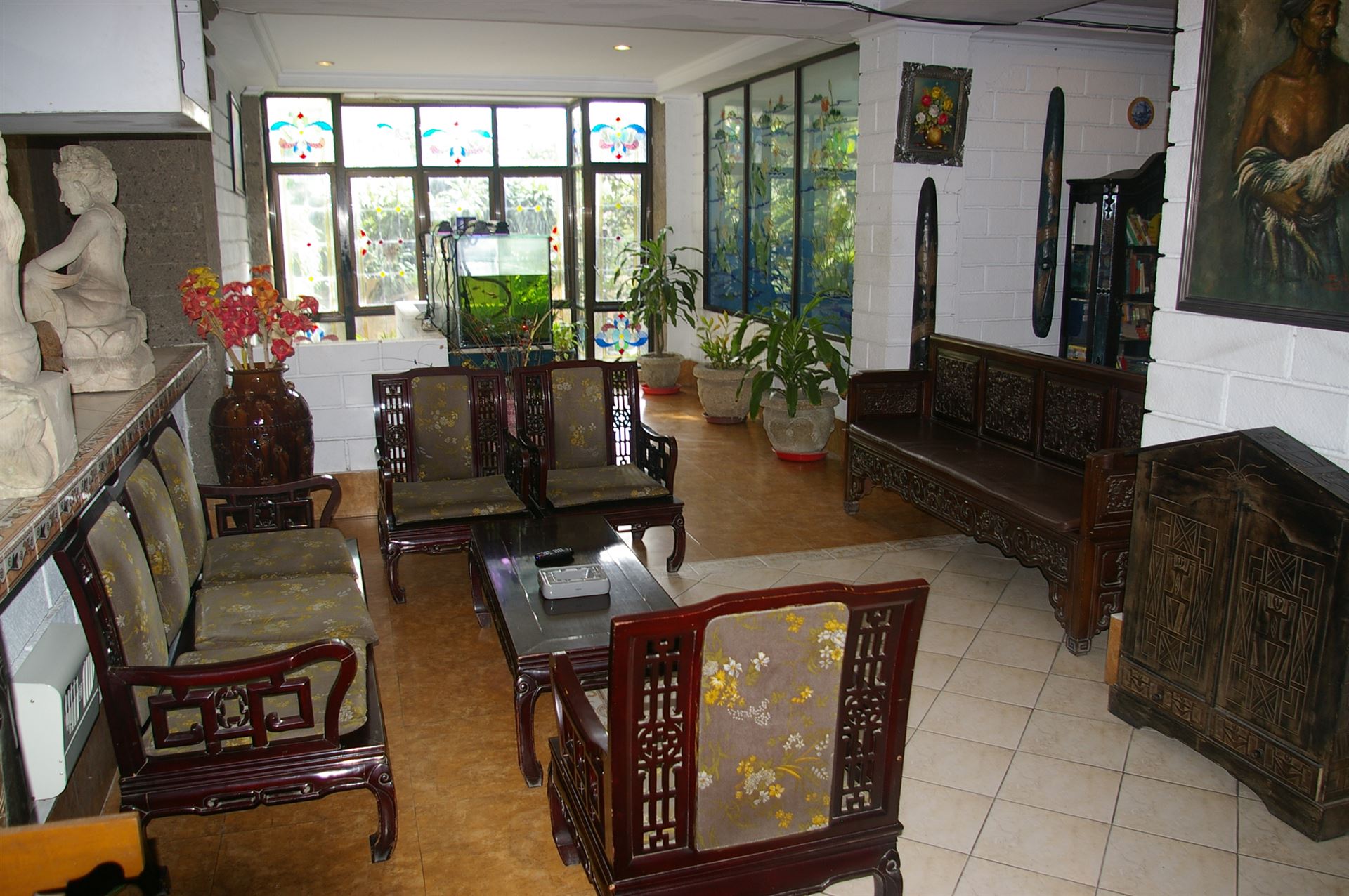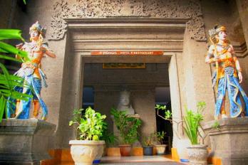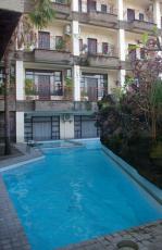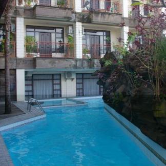 Das einfache Vilarisi Hotel, im Inneren aufwendig mit indonesischen Steinmetzarbeiten dekoriert, verfügt über eine kleine Lobby und ein Restaurant (im Restaurant kostenloser WiFi-Internetzugang). Eine urige Brücke führt zum kleinen Pool (sehr kleine Liegefläche mit einer begrenzten Anzahl von Liegen), auf der Dachterrasse (5. Stock, Lift) mit fantastischem Blick über Kuta und die beeindruckende Berglandschaft im Hinterland stehen weitere Liegestühle zur Verfügung. Verschiedene Serviceleistungen wie Auto- und Motorradvermietung, Wäscherei-Service und Safe werden ebenfalls angeboten.